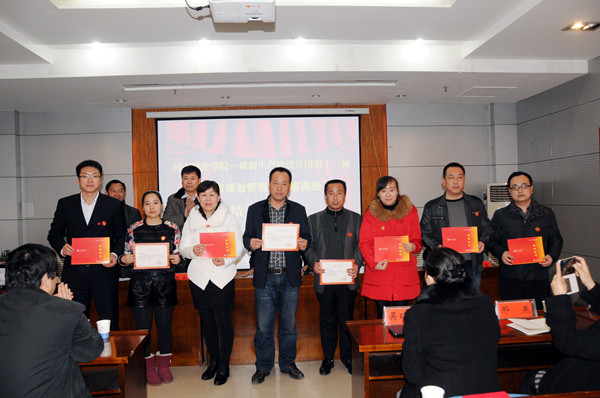 1月8日下午,新疆生产建设兵团第十三师城市规划管理干部培训班结业典礼在我校就业指导中心举行。我校副校长陈丙义,新疆生产建设兵团第十三师党委组织部副部长梁建龙、规划局局长唐显忠,河南省住建厅办公室副主任秦华出席典礼。培训班全体学员、我校相关职能部门和学院负责人参加典礼。典礼由校党委组织部部长郑海金主持。