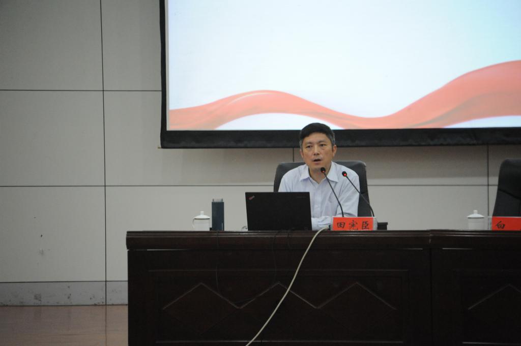 4月27日下午,田宪臣教授以《习近平新时代中国特色社会主义思想》为题,从鲜明主题、基本定位、理论特色、深刻内涵、基本方略五个方面为我们系统阐述了习近平新时代中国特色社会主义思想的重大意义、深刻内涵、精神实质和历史贡献。他强调,在实现中华民族伟大复兴的新征程中,我们要自觉以习近平新时代中国特色社会主义思想武装头脑,自觉维护以习近平同志为核心的党中央权威和集中统一领导,自觉与以习近平同志为核心的党中央保持高度一致。