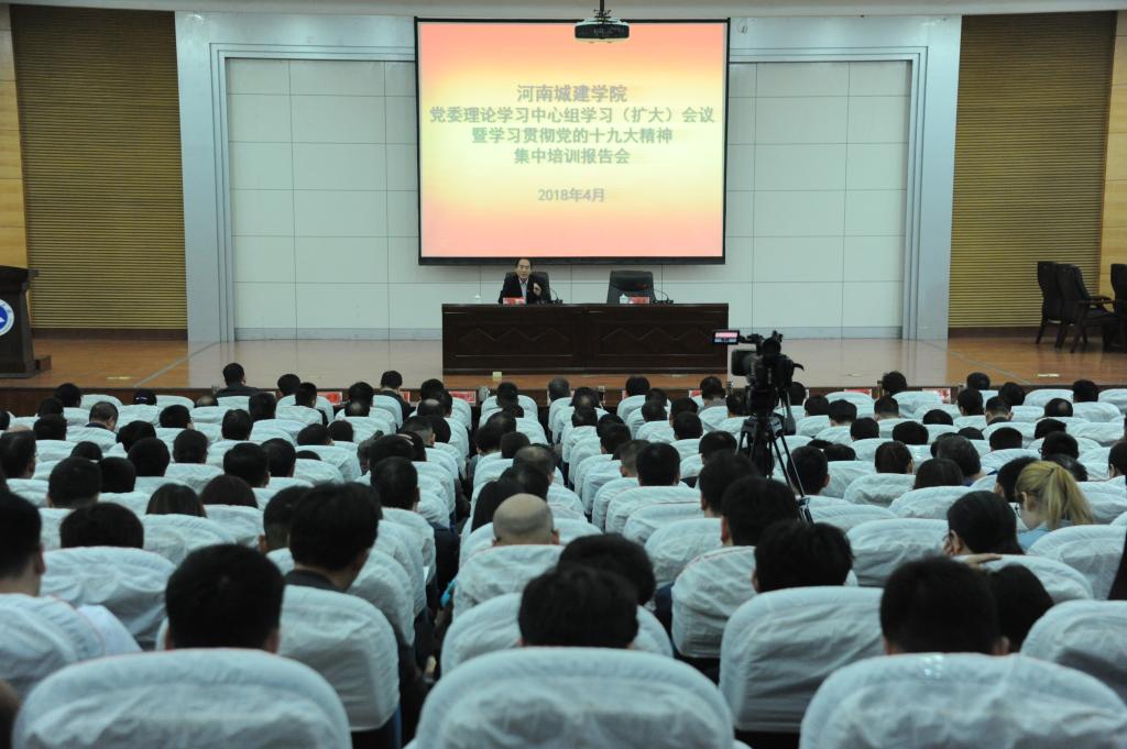 (通讯员 张云霞)4月26日-27日,党委理论学习中心组学习(扩大)会议暨学习贯彻党的十九大精神集中培训会在校行政楼学术报告厅举行。省委宣讲团成员、省委党校教授、正厅级巡视员徐洪波,省委宣讲团成员、省委党校科学社会主义教研部主任田宪臣教授,市委宣讲团成员、市委市直工委委员蔡学礼教授应邀分别做专题报告。校领导张惠贞、王召东、杨留栓、张坤书、许朝民、赵金安、杨风岭、梁再培、王靖、刘守勇、周新峰和全校副科级以上干部、党支部书记、民主党派负责人及学生代表共同听取了报告。报告会分别由党委副书记、工会主席许朝民、纪委书记刘守勇、组织部部长白燕主持。