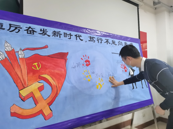 本次活动从“悟思想”“观短片”“诵经典”“讲榜样”“谈感悟”“送祝福”六个环节感念党的伟大,更加坚定在党的带领下,筑牢理想信念,领悟文化力量。在“悟思想”中,郑巍老师为大家解读了习近平总书记在北京冬奥会、冬残奥会总结表彰大会上发表的重要讲话精神。使大家深深的领悟到只要矢志不渝坚持党的全面领导,就一定能够战胜前进道路上的任何艰难险阻,就一定能够办好我们想办的事情。在“观短片”环节,从《答卷》中祖国交给人民的伟大而不可磨灭的“答卷”到《不负此生》中人民在祖国、在党的殷切期望下挑战自我,战胜自我,完善自我的决心与定力。在“诵经典”环节,管理学院四名优秀青年用高昂而富有底气的声音,朗诵着党的艰辛奋斗创建人民美好生活,在诵经典中体现正能量,厚爱正能量,弘扬正能量。在“讲榜样”环节,由优秀学生代表李彦杰带来身边榜样故事,榜样力量如骄阳似火,鼓舞同学们前进、前进、再前进!在“谈感悟”环节,李文雅老师通过讲述自身感想,从更加亲近于同学的角度讲述崇德向善,责尽心守的新一代青年之担当。在“送祝福”环节,老师留下象征期望的手印并留名激励同学们不负韶华,同学们留下心愿贴,在老师的殷切期望下展现最美年华。