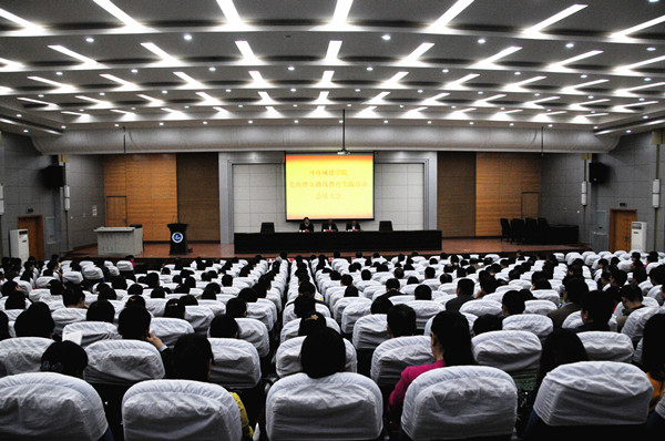 10月29日上午,我校在学术报告厅召开党的群众路线教育实践活动总结大会,学习贯彻落实习近平总书记重要讲话精神以及省委书记郭庚茂的讲话精神,对我校开展的教育实践活动进行总结,对巩固和拓展活动成果、加强党的作风建设、落实全面从严治党要求进行部署。省委第十六督导组副组长陈耀春一行,校领导李德平、孔留安、王召东、陈丙义、杨留栓、张坤书、许朝民出席会议,全校中层以上党员领导干部、教工党员和各民主党派负责同志参加会议。会议由校长孔留安主持。