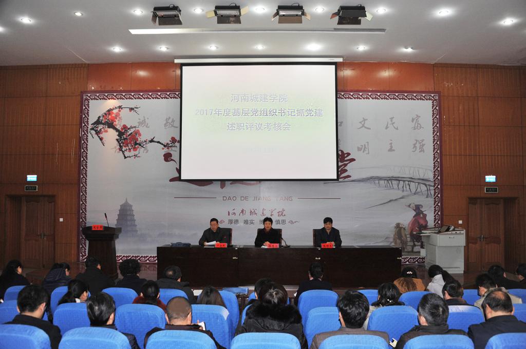 (通讯员 吴锦展)12月15日上午,我校在图书馆报告厅召开2017年基层党组织书记抓党建工作述职评议考核会议。校领导张惠贞、张坤书、许朝民出席会议,各党总支、直属党支部书记、党委工作部门科级以党员干部参加会议。会议由校党委副书记许朝民主持。