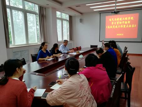 (通讯员 贺伟) 9月18日上午,电气与控制工程学院在学院会议室组织召开贯彻学习“中共中央组织部、中共教育部党组《高校党建工作重点任务》的通知”,电气学院领导班子成员、教工党支部书记、委员、学生党支部书记和党建工作人员参加了此次会议。本次会议由党总支书记赵静生同志主持。