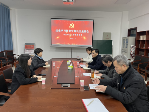根据校党委关于组织召开党史学习教育专题民主生活会的部署与要求,1月4日上午,马克思主义学院领导班子在一号楼423会议室召开了党史学习教育专题民主生活会。学校党史学习教育第五巡回指导组组长刘雅妹、校纪检干部代博君列席会议,会议由学院党总支书记王世翔主持。