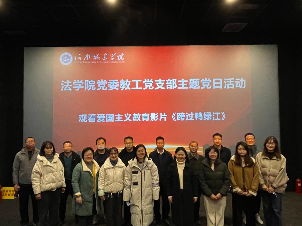 (通讯员:王晓永)为大力弘扬伟大建党精神,巩固学习贯彻党的十九届六中全会精神和党史学习教育成果,12月30日下午,法学院党委教工党支部组织开展以观看红色影片《跨过鸭绿江》为主题的党日活动。